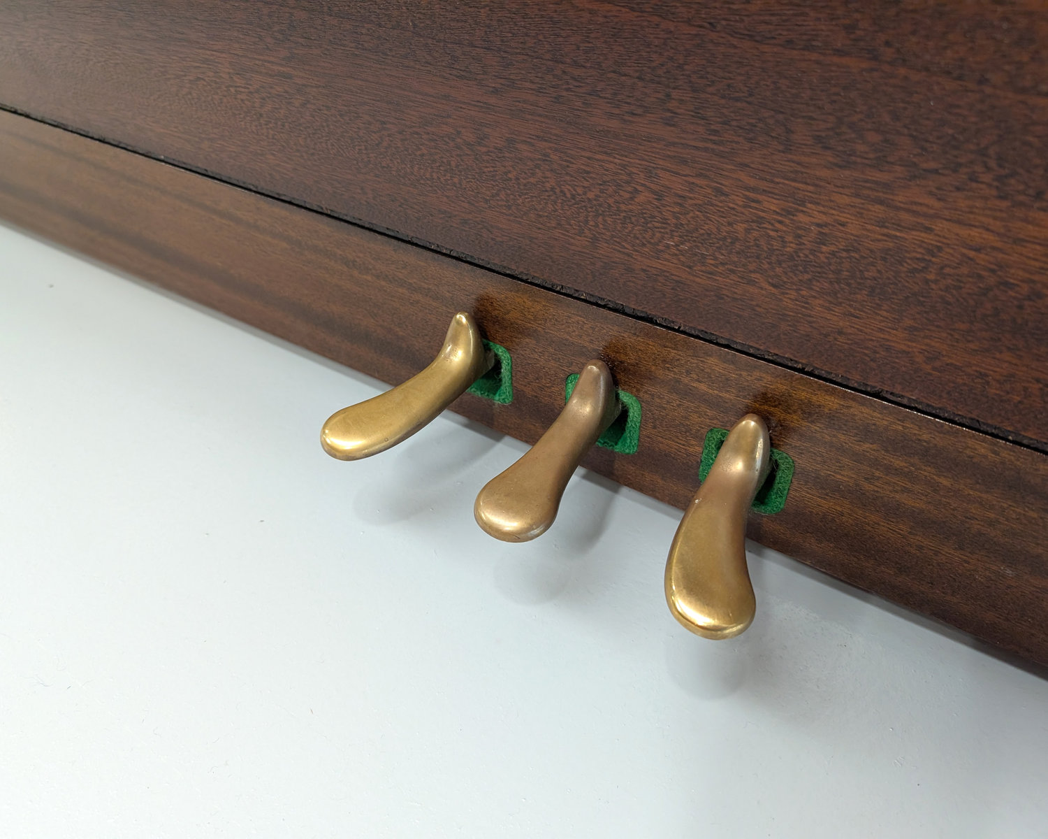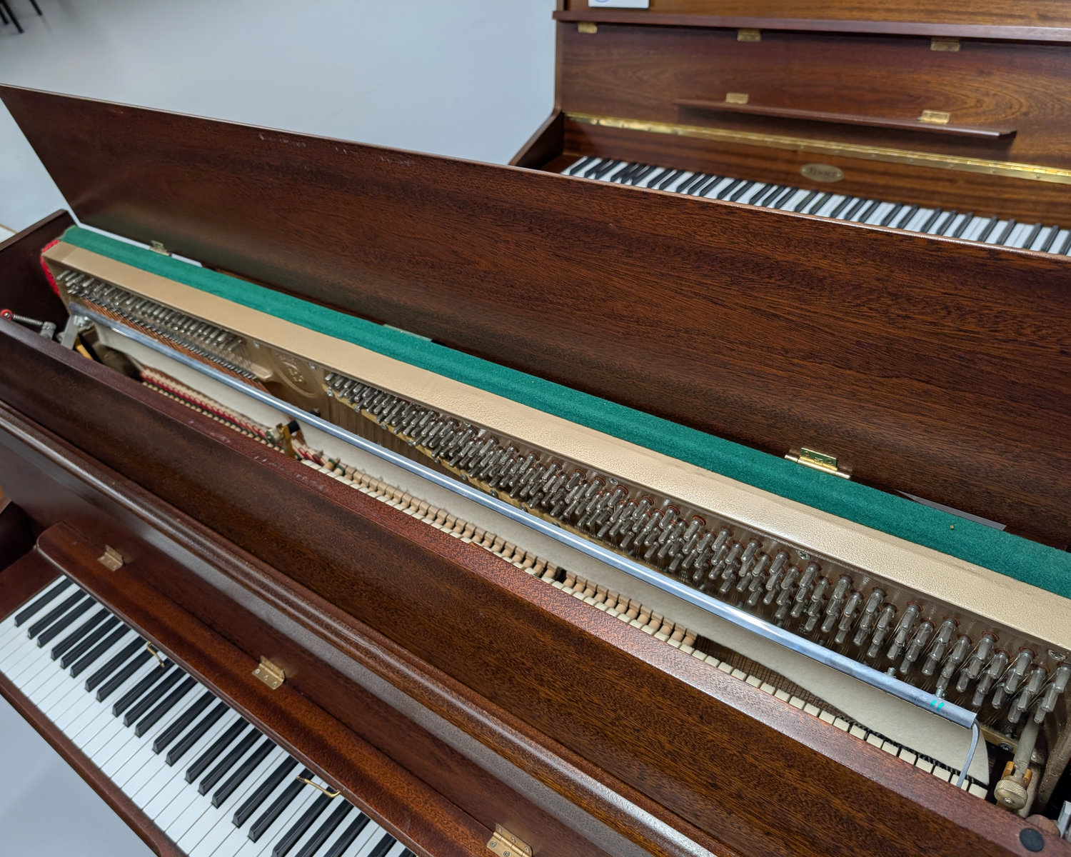 The casework is in excellent condition throughout, with no fading and a clean, well-kept appearance that allows it to sit elegantly in any home. Its compact proportions make it an effortless fit in smaller rooms while still offering the musical presence of a full-height upright.